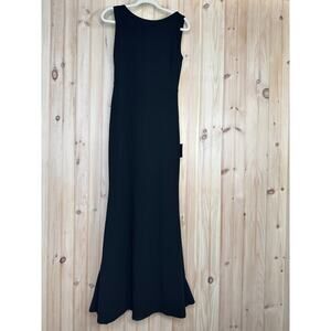 Be the standard for elegance in this crepe knit dress that effortlessly hugs your figure as it falls from a sleeveless bodice with a crew neckline into a mermaid maxi skirt. Turn heads with the sexy backless design that sits atop a bow detail and cascading ruffles, accenting the back of the stunning silhouette. Slip-on design.