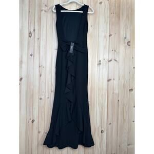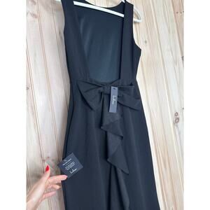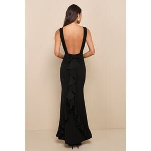NWT Lulus Exquisite Refinement Black Backless Bow Ruffled Maxi Dress Banquet L