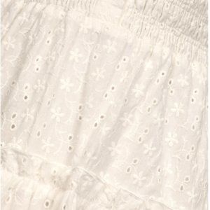 NWT eyelet tie-back tiered mini dress in size medium. Lined with scoop neckline and button-up bodice.