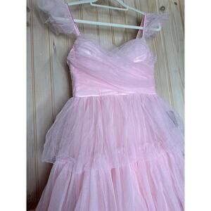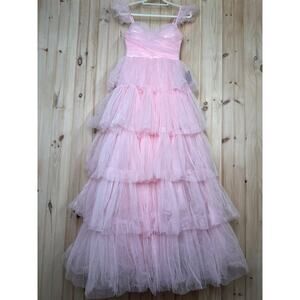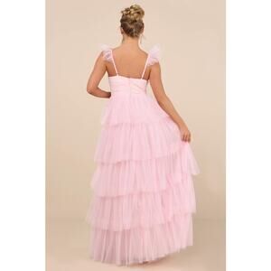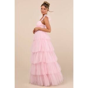 NWT Lulus Fabulous Poise Light Pink Tulle Ruffle Tiered Maxi Dress Debut Fairy S