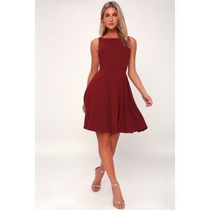 NWT Lulus Fall For You Burgundy Skater Dress, Size XS