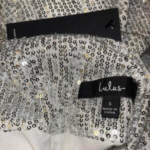 NWT Lulus Famous Behavior Silver Sequin Cowl Neck Mini Dress