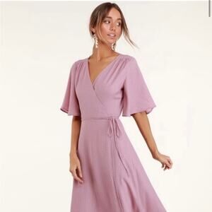 NWT Lulu’s Farah printed wrap dress flutter sleeve sz L