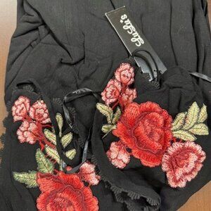 NWT Lulus Favorite Crush Black Embroidered Maxi Dress