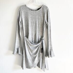 NWT Lulu’s Favorite Tune Heather Grey Faux Wrap Sweater Dress. Size Medium. Long sleeves. Lined skirt.