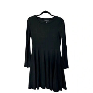 NWT Lulus Fit and Fair Black Ribbed Knit Long Sleeve Skater Dress Sz Large