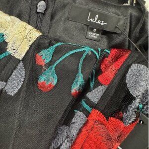 NWT Lulus Forever Lovable Black Floral Embroidered Tiered Midi Dress (size S)