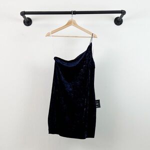 NWT Lulu’s Forever Thriving Navy Blue Velvet One-Shoulder Bodycon Dress