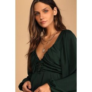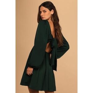 NWT Lulus Forever Tied to You Emerald Green Satin Tie-Back Mini Dress XL
