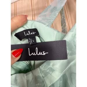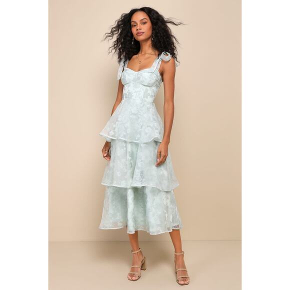 NWT Lulus Glamorous Sweetie Sage Burnout Tie-Strap Bustier Midi Dress Gala L