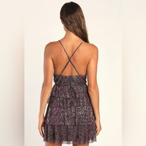 NWT Lulus Glowing Gorgeous Magenta Metallic Tiered Mini Dress Sz Large