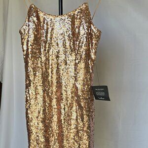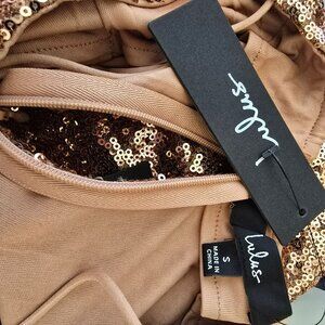 Radiate elegance with this dazzling gold sequin mini dress from Lulus. Its shimmering design offers a chic look for evening outings.