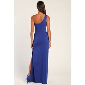 NWT Lulus Good Times Only Royal Blue One-Shoulder Maxi Dress Gala Wedding Sz M