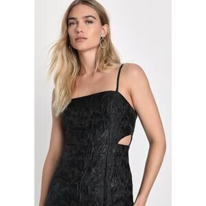 NWT Lulus Gorgeously Chic Floral Jacquard Cutout Maxi Dress in Black sz S