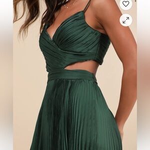 NWT! Lulus Got the Glam Emerald Green Pleated Cutout Maxi Dress. Medium $128