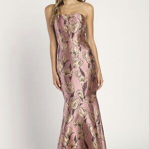 NWT Lulus Gowning Around Mauve Floral Jacquard Strapless Maxi Dress