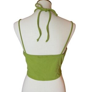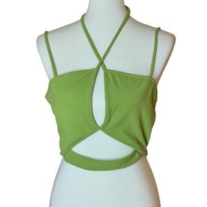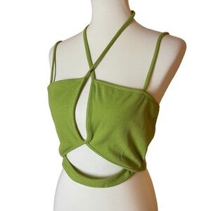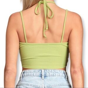 NWT Lulus Green Ribbed Strappy Halter Crop Top with Crisscross Front - Size XL
