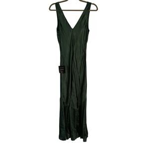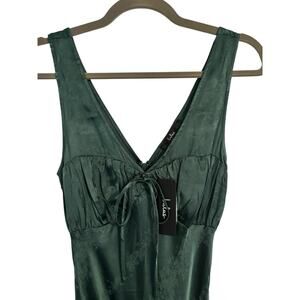 NWT Lulus Green Satin Jacquard Maxi Dress Small V Neck Tie Front Mermaid Hem
