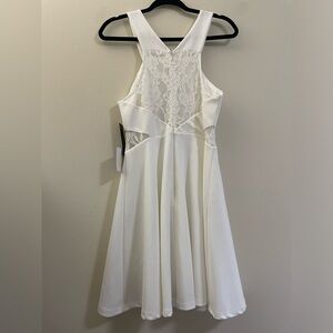NWT Lulu’s Halter Lace Detail A-Line Mini Dress in White - L