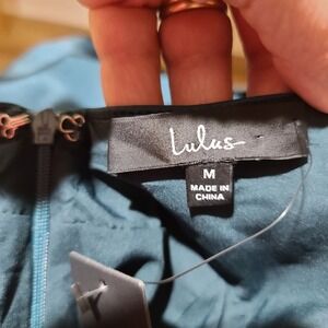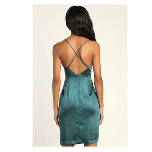NWT Lulus Hot Night Out Teal Green Satin Surplice Faux Wrap Dress size Medium