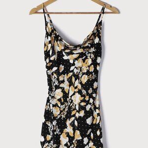 NWT Lulus I Wanna Be Yours Black Floral Print Cowl Neck Slip Mini Dress (sz SM)