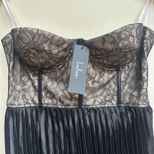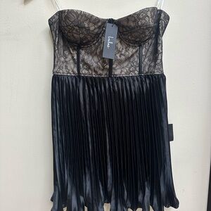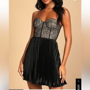 NWT Lulu’s Ideal Romance Black Lace Bustier Strapless Mini Dress