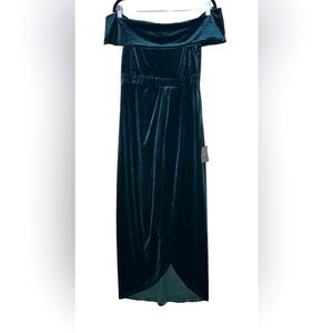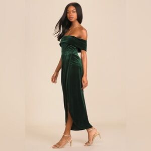 NWT Lulus I'm Enchanted Emerald Green Velvet Off-the-Shoulder Maxi Dress, Medium