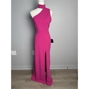 NWT Lulu’s Keep It Interesting Hot Pink Asymmetrical Halter Maxi Dress Size M