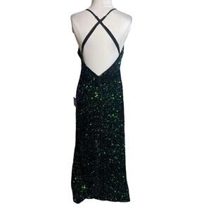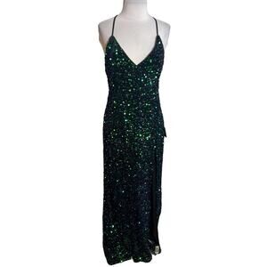 NWT Lulu’s Keep it Regal Green Iridescent Sequin Velvet Maxi Dress Sz L