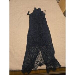 The NWT Lulus Kiss Me at Midnight Forest Green Lace Sheath Dress in size Small is a stunning party dress perfect for a special occasion. The floral lace pattern, sleeveless design, and halter neckline add a touch of elegance and sophistication. The midi length and zip closure make it easy to wear and perfect for a summer or spring cocktail or formal event. Made by Lulus, this dress is sure to make a statement and turn heads wherever you go.