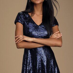 NWT Lulus Larsa Royal Blue Sequin Backless Mini Dress