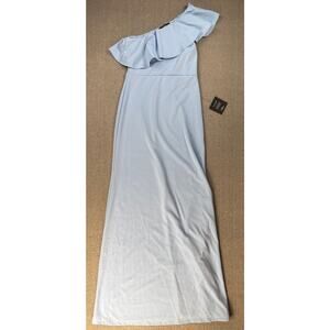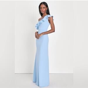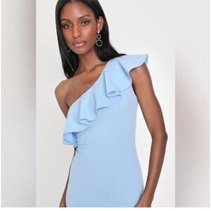 NWT Lulus Last Forever Maxi Dress Powder Blue One Shoulder Ruffle Size Large