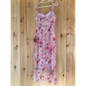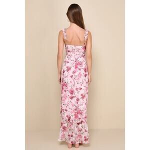NWT Lulus Lovable Spirit Pink Floral Burnout Ruffled High-Low Maxi Dress Size M