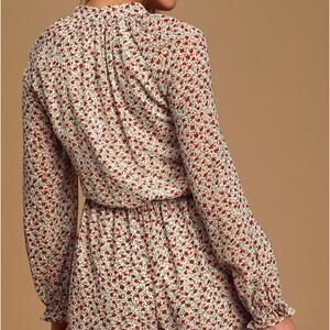 Lulu's Love Grows Floral Print Long Sleeve Tie-Neck Romper Size Large