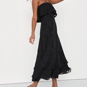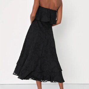 NWT Lulu's Love You So Truly Black Floral Strapless Midi Dress Women's Size M