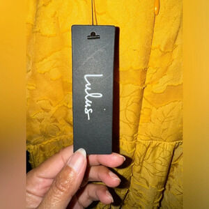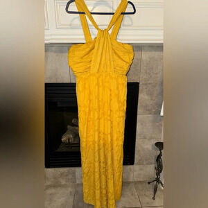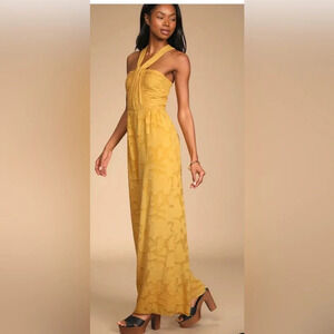 NWT Lulus Lovely Celebration Yellow Floral Burnout Chiffon Jumpsuit Size Large