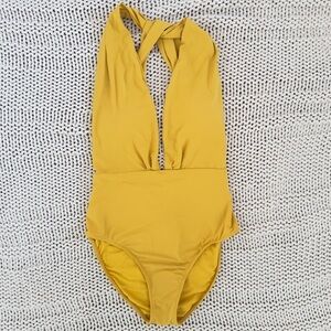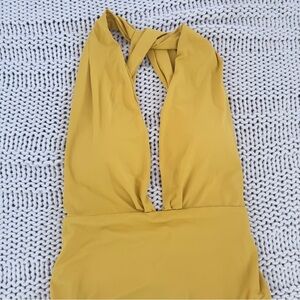 This NWT Lulus Low Plunge One Piece Women's Yellow Swimsuit in a size medium. It's brand new with tags attached and in excellent condition.