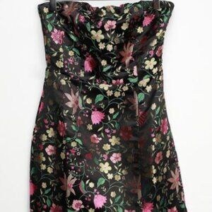 NWT Lulu's Make a Move Strapless Satin Floral Jacquard Midi Dress Homecoming S