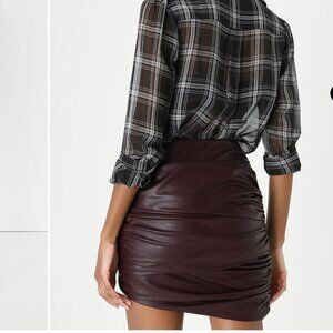 NWT Lulu's Maroon Vegan Faux Leather Ruched Mini Skirt