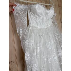 NWT Lulus Maurine White Lace Off-the-Shoulder Bustier Bridal Dress Wedding Sze M
