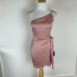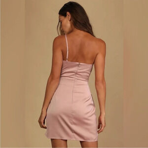 NWT Lulu’s Meant to Be Together Dusty Pink Satin One-Shoulder Mini Dress