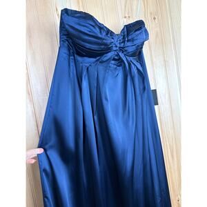 NWT Lulus Memorable Entrance Dark Blue Strapless Satin Maxi Dress Bridesmaid M