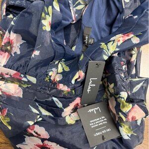 NWT Lulus Molinetto Navy Blue Floral Organza Ruffled Tiered Maxi Dress