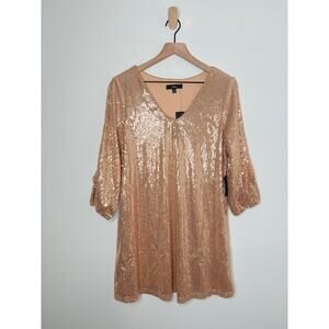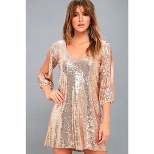 NWT Lulus Moment To Shine Sequin Split Sleeve Shift Dress Size XS Rose Gold