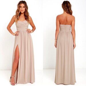 NWT Lulu's Moonlight Serenade Maxi Dress Gown in Taupe