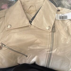 NWT Lulu’s Out for the Night Beige Vegan Leather Moto Jacket