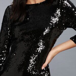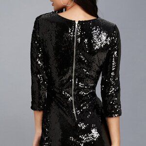 NWT Lulus Pass the Champagne Black Sequin Bodycon Dress