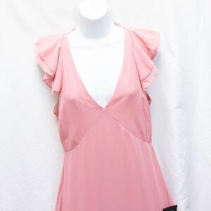 NWT Lulus Pastel Pink Chiffon Tiered Layered Romantic V Neck Maxi Dress Gown M