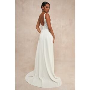 Everything will feel instantly perfect the moment you step into the Lulus Positively Romantic White Sheer Mesh Embroidered Maxi Dress on your big day! Intricate embroidery and shiny clear sequins adorn sheer mesh fabric as it shapes a seamed bodice with padded, lined cups, a scoop neckline, a low-cut back, and slender tank straps. The high, fitted waist tops a crepe knit A-line skirt that cascades down to a sweeping maxi hem with a lovely train at the back. Hidden back zipper/clasp.