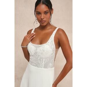 NWT Lulus Positively Romantic White Sheer Mesh Embroidered Maxi Dress Bridal S